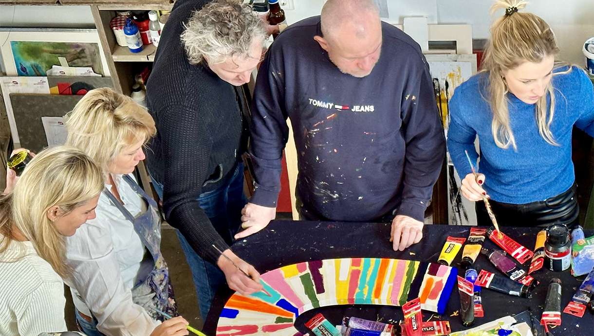 Kunst verbroedert en opent de blik! Het laat de deelnemers letterlijk met andere ogen kijken naar zichzelf, het doek, naar elkaar en uiteindelijk naar het resultaat. Voor elk doel en elke doelgroep kunnen wij een workshop op maat bieden, geheel ingevuld naar jouw wensen, doelen, gedachten of dromen.